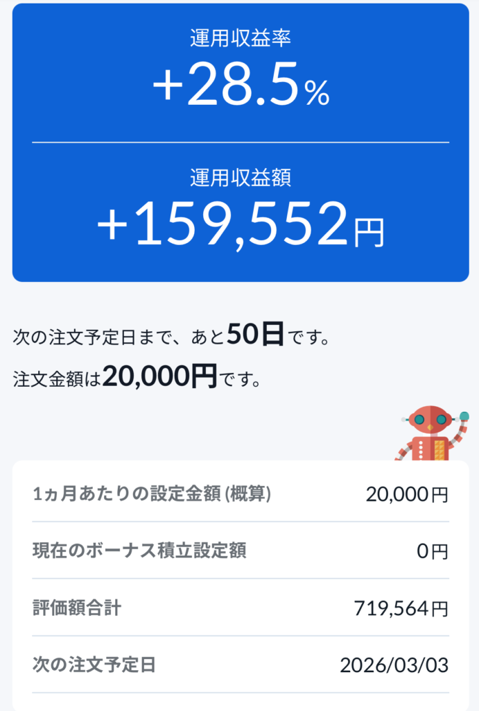 私はNISAで、毎月2万円の積立投資を2年間続けています。