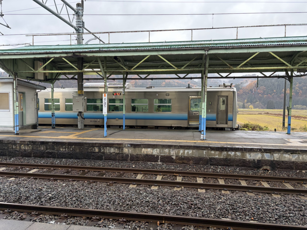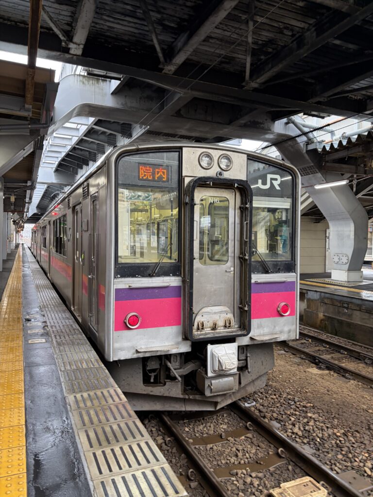 秋田駅からは奥羽本線の701系に乗車、この形式を見ると東北に来たなあという安心感を覚えます。