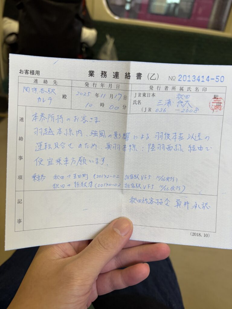 まるで“裏ルート”のような旅程ですが、すぐに対応してくれた駅員さんには感謝しかありません。